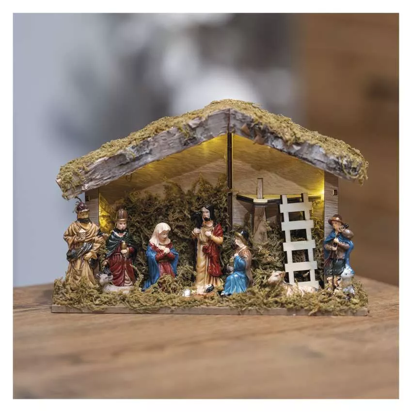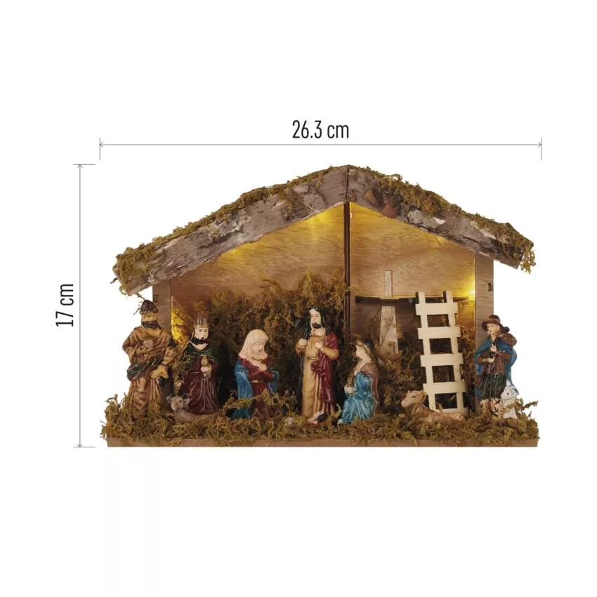 LED karácsonyi betlehem, 17 cm, 2x AA, meleg fehér, időzítő