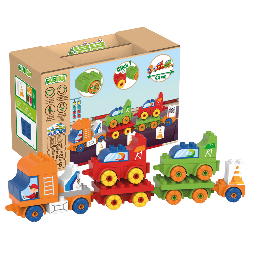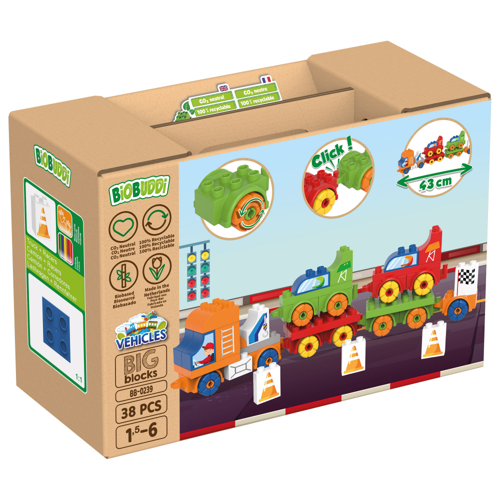 BiOBUDDi BB-0239 | legó-duplo-kompatibilis bio építőjáték | Kamion és versenyautók