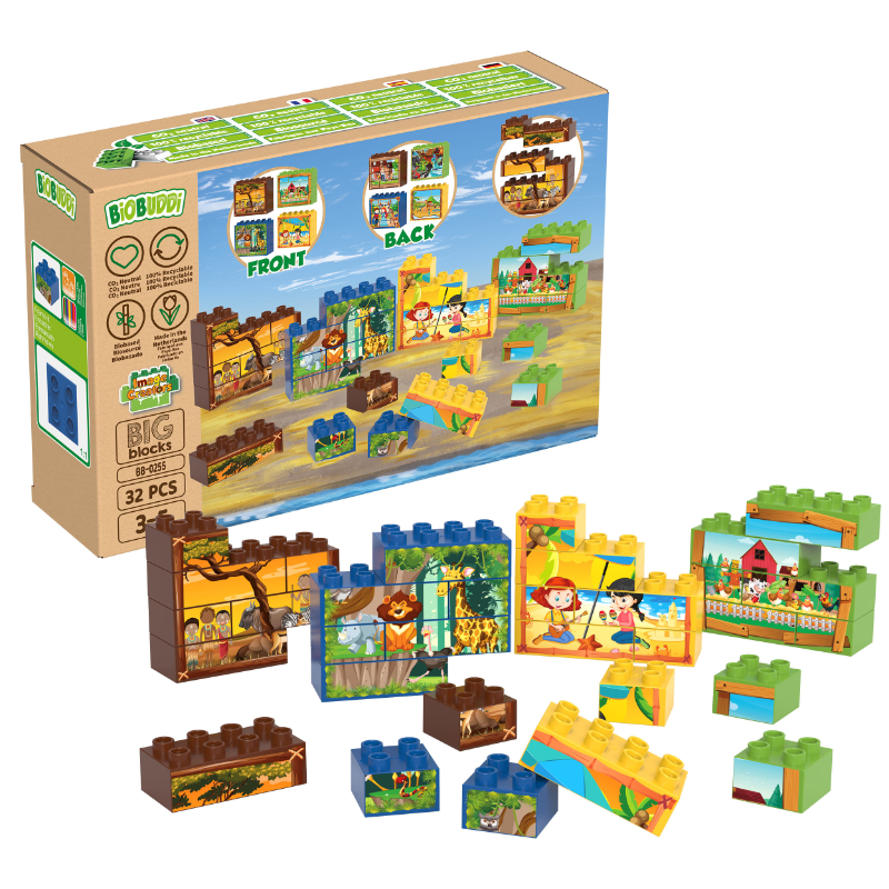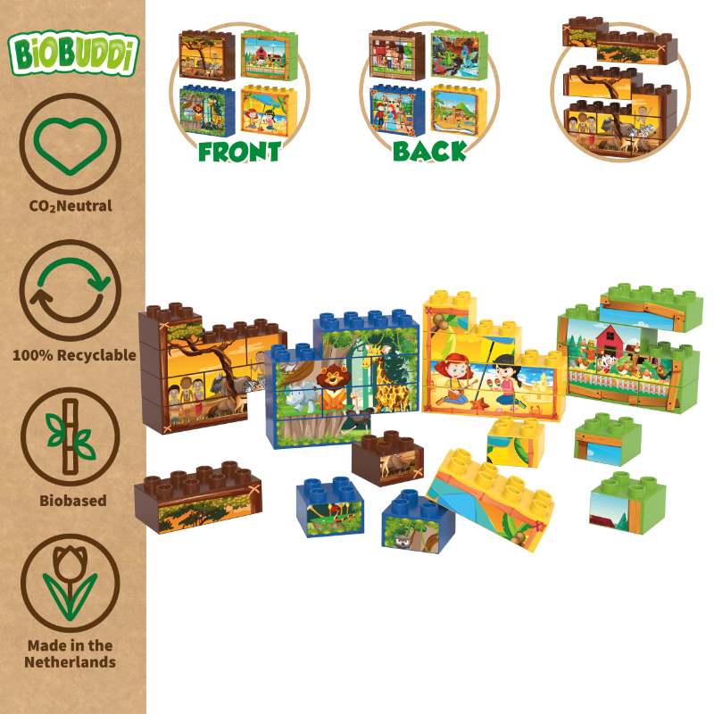 A BiOBUDDi biojátékai cukornádnövények maradványaiból készülnek Hollandiában. A színes elemek a gyerekek tapasztalataihoz igazodnak, és nem csak környezetbarátak, hanem újrahasznosíthatóak is. A teljes gyártási folyamat A-tól Z-ig CO2-semleges. A játékokat alaposan tesztelték, és minden feltételnek megfelelnek.