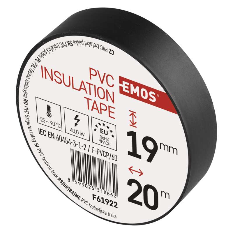 EMOS PVC Szigetelőszalag 19/20 fekete, 10db-os csomag