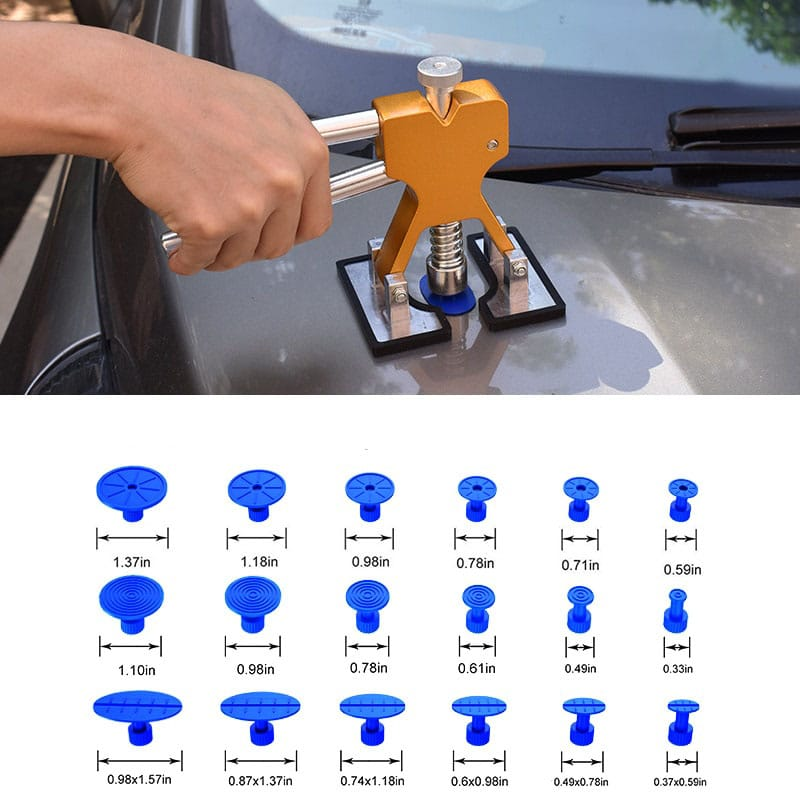 Horpadás javító készlet profi A karosszérián keletkezett károkat nagyon költséges javítani, de egy kis kézügyességgel és egy profi szettel könnyedén házilag is megoldhatjuk a javítást A profi horpadás javító készlet tartalmaz mindent ami szükséges lehet számos horpadás típus javításához.A szett tartalmaz speciális ragasztópisztolyt a hozzávaló ragasztó rudakkal, kihúzó szerszámokat és karosszériás kalapácsot a megfelelő kiütő fejekkel. A horpadásjavító szettel nem csak járművek de bármilyen fém felületet tehát háztartási eszközök stb felülete is javíthatóA szett tartalmazza:Kézi kihúzó+fej készlet