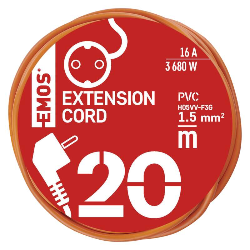 Emos lengőkábel 20m 1,5mm 1×2P+PE 250V~/16A 3680W max H05VV-F3G narancs