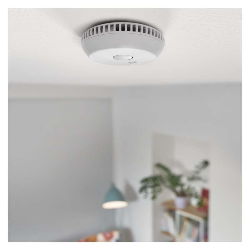 Füstjelző hang- és fényjelzéssel, 10 éves élettartammal.