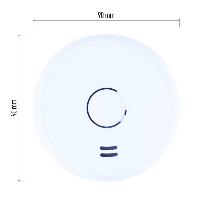 felszerelés típusa: falra szerelhető vagy szabadon álló, jelzés típusa: optikai és hang, észlelés típusa: Füstérzékelő, jelzési hangerő: >85 dB, 3 m-es távolságról, üzemi hőmérséklet: 0 °C és 40 °C, üzemi nedvességtartalom: 5–95 %, élettartam: 10 év, táplálás: 1× 9 V, tartozék, méretek: 90 × 33 mm, értékesítési csomagolás: 1 db, kis doboz, garancia-időszak: 2 év