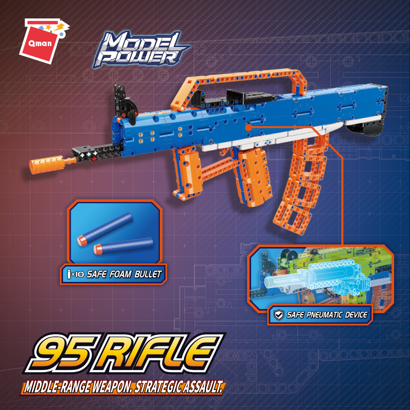 QMAN® 52004 | lego-technic-kompatibilis építőjáték | 528 db építőkocka | Type-95 gépkarabély puska – 10db szivacs tölténnyel