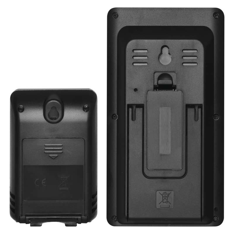 hőmérő kialakítása: vezeték nélküli, órák: DCF (rádióvezérelt óra), LED háttérvilágítás, 12/24 időformátum, időzónák, belső hőmérséklet: -9 °C és +50 °C, felbontás 0,1 °C, külső hőmérséklet: -50 °C és +70 °C, felbontás 0,1 °C, opció a hőmérséklet mértékegység beállítására: °C/°F: °C/°F, min. és max. hőmérséklet, hatótávolság szabad területen: akár 60 m, lehetséges kiegészítő érzékelő használata: 1 (E05018), falra függesztés lehetősége, az állomás tápellátása: 2× 1,5 V AAA (nem tartozék), az érzékelő tápellátása: 2× 1,5 V AAA (nem tartozék), jelátviteli frekvencia: 433 MHz, a főegység méretei: 25 × 82 × 152 mm, érzékelő méretei: 27 × 60 × 95 mm, képernyőméret: 54 × 74 mm, értékesítési csomagolás: 1 db, kis doboz, garancia-időszak: 2 év