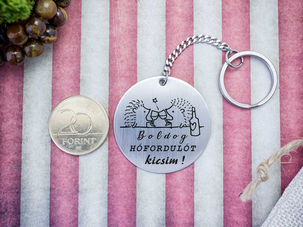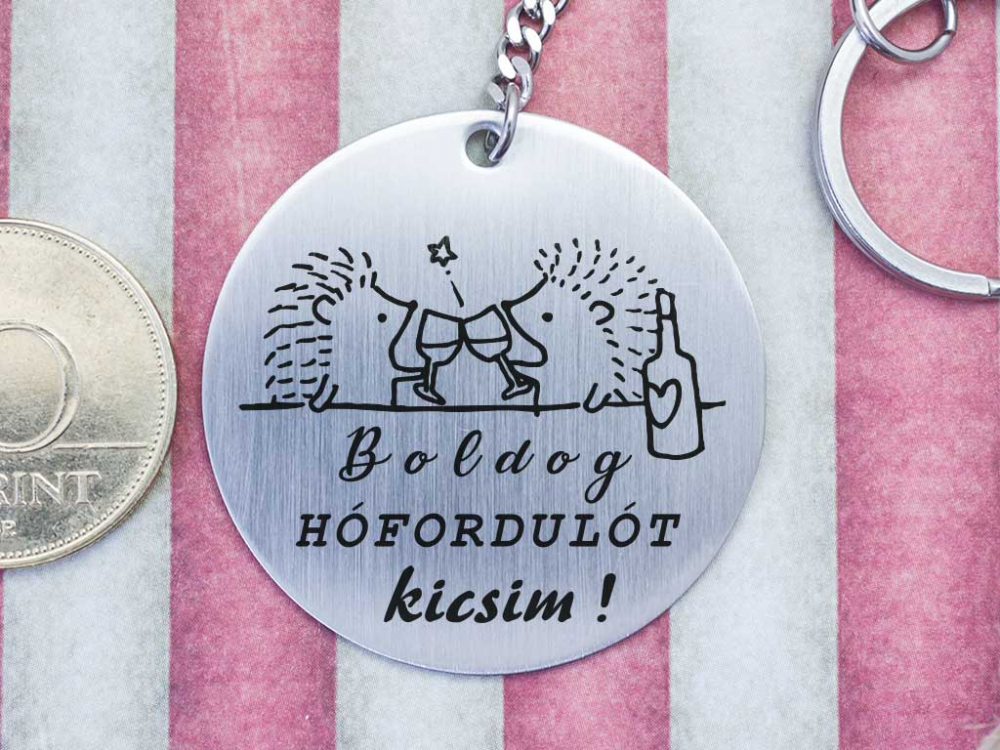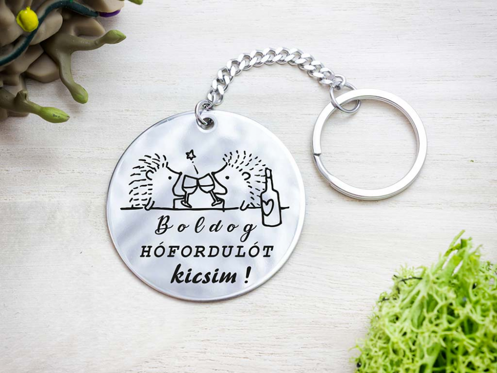 Boldog hófordulót Kicsim acél medálos kulcstartó