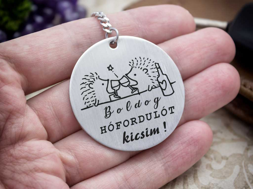 Boldog hófordulót Kicsim acél medálos kulcstartó