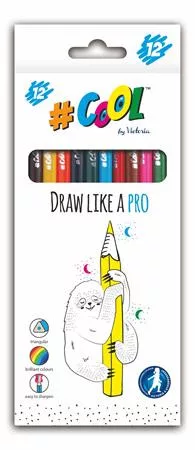 COOL BY VICTORIA Színes ceruza készlet, háromszögletű, COOL BY VICTORIA, 12 különböző szín