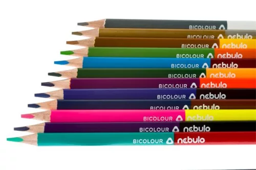 NEBULO Színes ceruza készlet, kétvégű, háromszögletű, NEBULO, 24 különböző szín